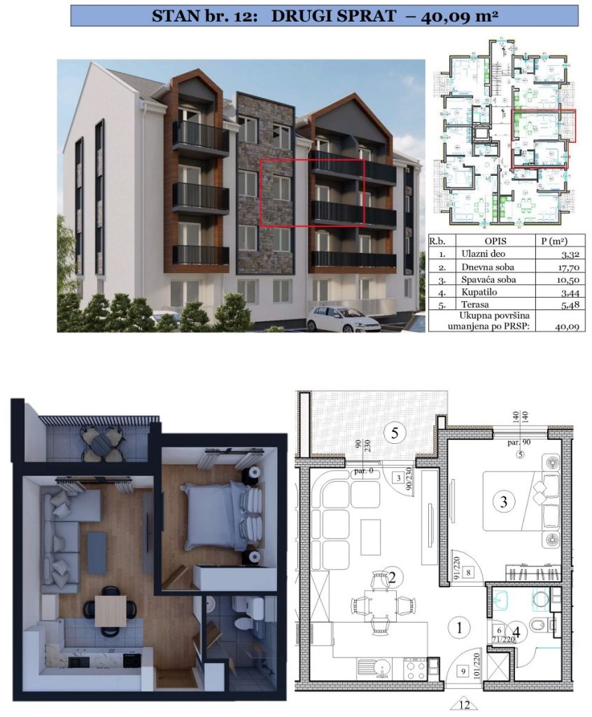 Stan 12 - Drugi sprat - 40,09m2