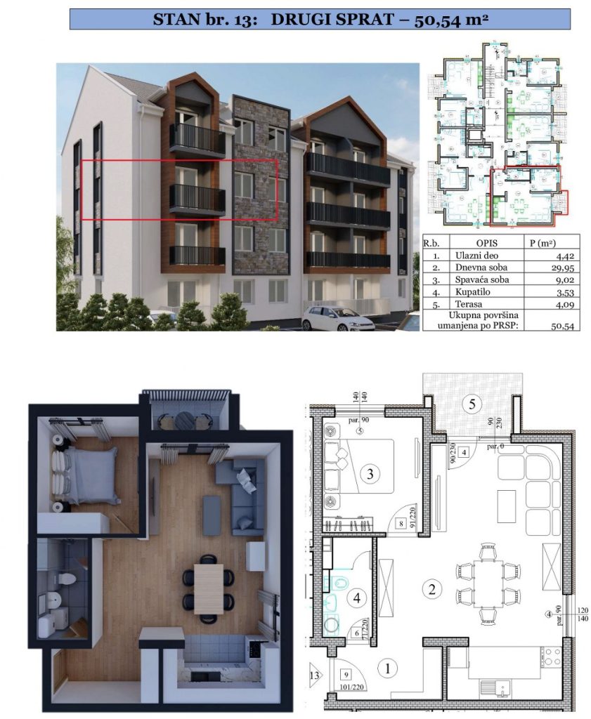 Stan 13 - Drugi sprat - 50,54m2