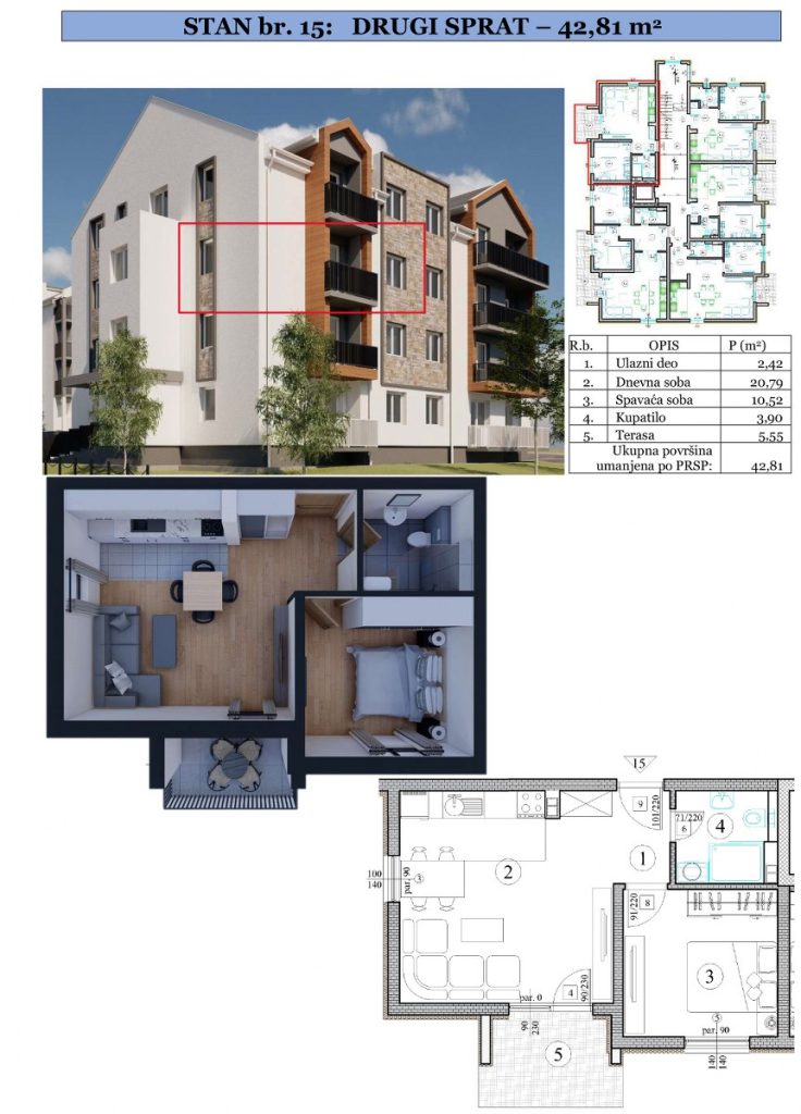Stan 15 - Drugi sprat - 42,81m2 PRODATO