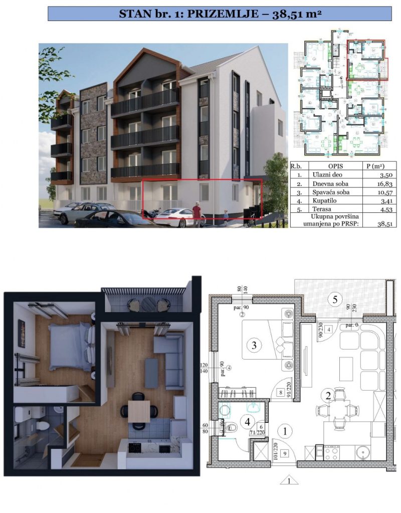 Stan 1 - Prizemlje - 38,51m2 PRODATO