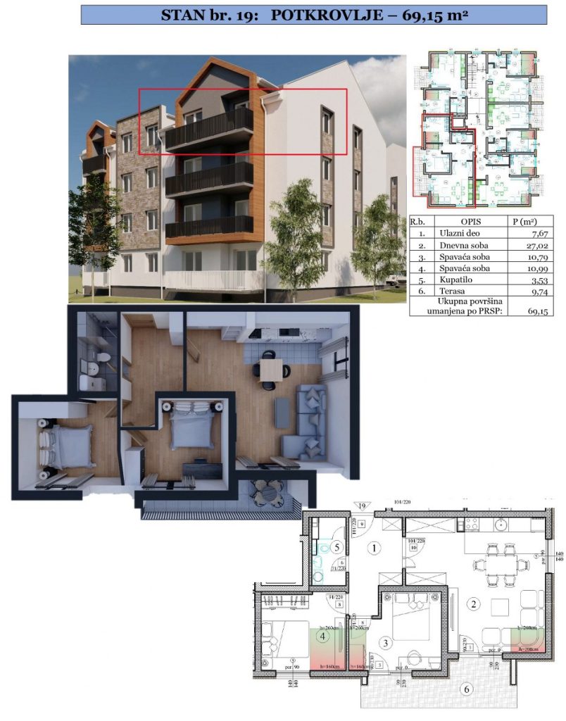 Stan 19 - Potkrovlje - 69,15m2